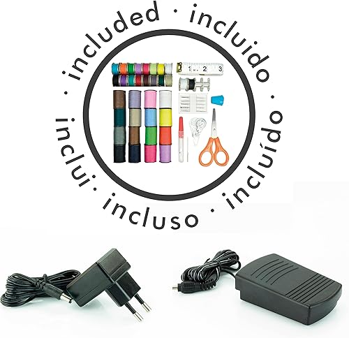 Jocca Machine a Coudre Portable avec Kit de 48 Accessoires Double Point 18 x 20 x 13 cm Blanc