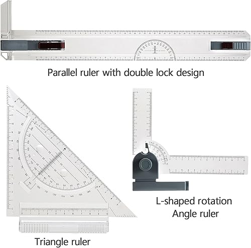 Efantur Planche Dessin A3, Kit de Planche a Dessin au matériel PS 51 x 36.8cm Anti-Choc léger Règle parallèle Mouvement Angle Réglable avec Un Sac de Rangement PVC