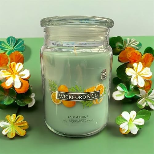 Allglazz Wickford & Co - Grande bougie parfumée à la sauge et aux agrumes - 510,3 g - Durée de combustion de 95 heures - Idéale pour tout espace et occasions spéciales