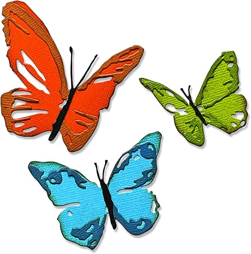 Sizzix Thinlits Die Set 3PK Brushstroke Butterflies by Tim Holtz | 665848 |Chapter 2 2022 Pinceau Papillons Chapitre, Acier Inoxydable, Multicolor, Taille Unique