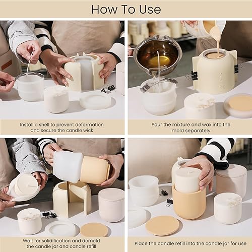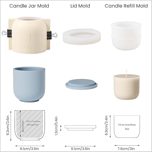 BOOWAN NICOLE Moule à bougie rond en silicone avec couvercle, moule de recharge de 255 g, moule pour béton jesmonite ciment (SH1023+916-2+LZ624)