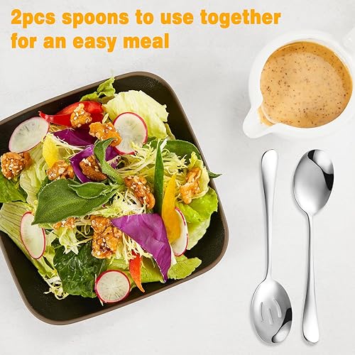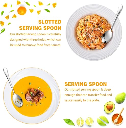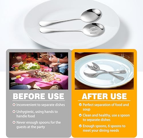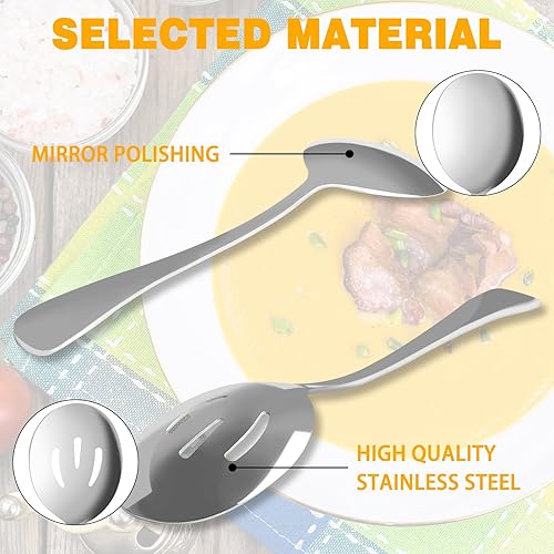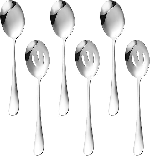 KUAOOAUK Lot de 6 couverts de service comprenant 3 cuillères de service fendues et 3 cuillères de service en acier inoxydable poli miroir, passe au lave-vaisselle