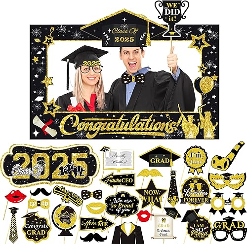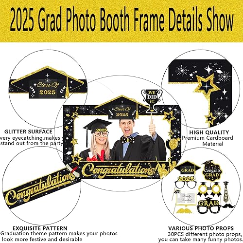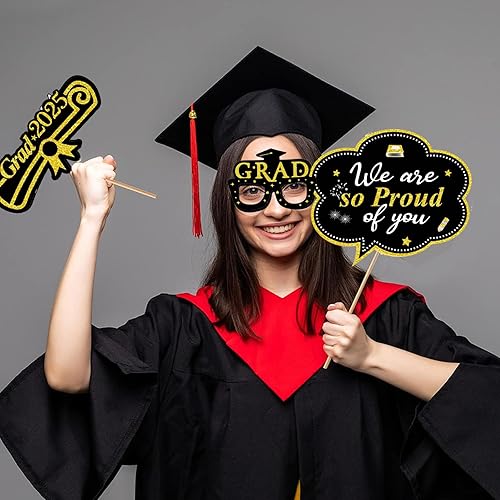 LMSHOWOWO 30 Pièces Accessoires de Photobooth Graduation, Graduation Cadre Photo, Photo Booth Props, Accessoires pour Photomaton de Remise de Diplôme 2025, pour Décorations de Remise des Diplômes