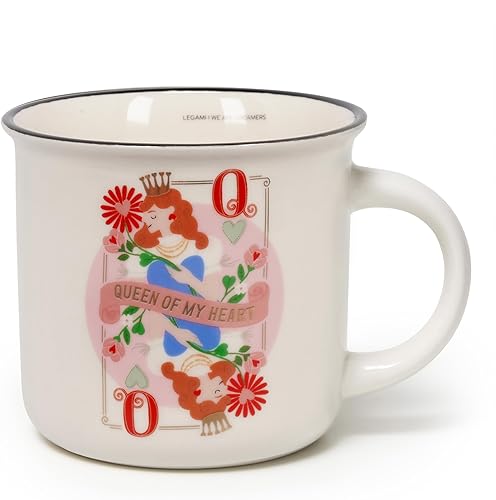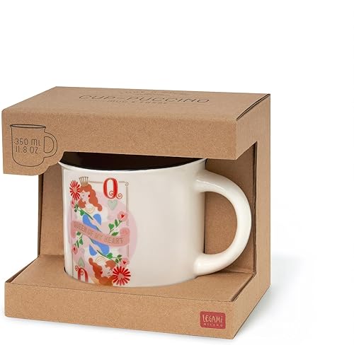 LEGAMI - Tasse Cuppuccino en porcelaine New Bone China, tasse de petit déjeuner, tasse à café Thé lavable au lave-vaisselle, thème Queen, diamètre 10 cm, capacité 350 ml