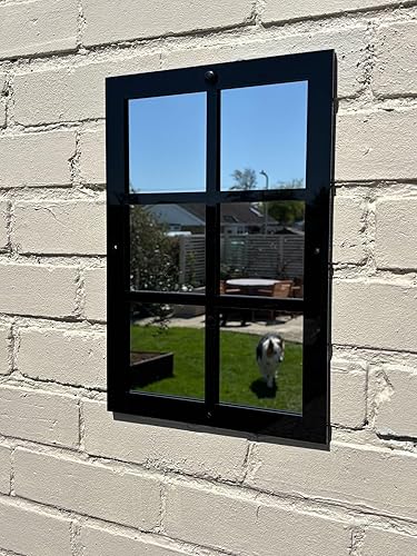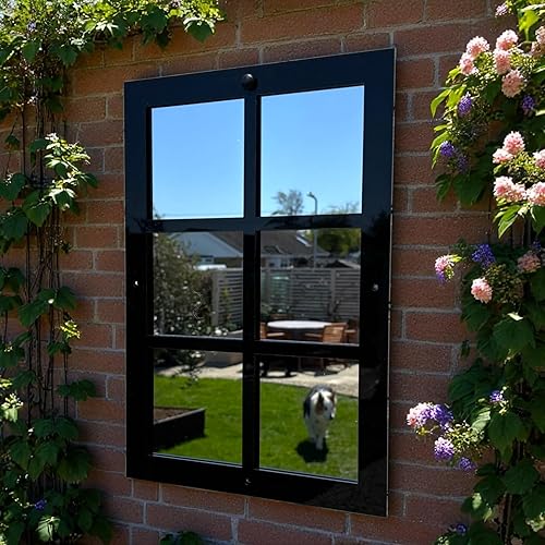 Servewell Miroir de jardin extérieur avec cadre de fenêtre à 6 panneaux - Cadre noir - Miroir de jardin décoratif mural - 70 x 35 cm