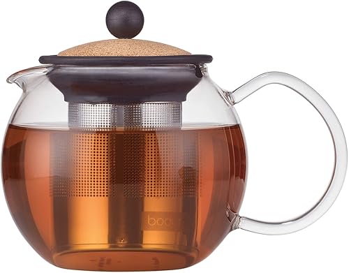 Bodum 1807-109S Théière à Piston, Filtre Inox, Transparent, 0,5 L, Verre, Liège, 12 cm