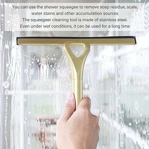 Raclette de Douche en Acier Inoxydable, Raclette de Douche Dorée avec Crochet pour Le Rangement, Raclette Dorée à Lame Douce et Ferme de 10 Pouces pour Salle de Bain, Verre de