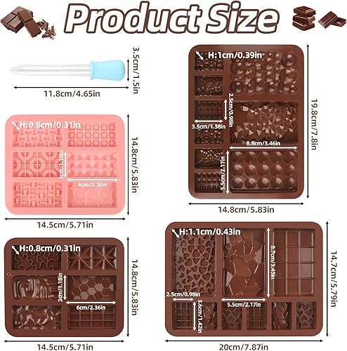 GHVACZS 4 Pièces Moule Chocolat, Moule a Chocolat en Silicone, Moule pour Chocolat avec 2 Morceaux de Compte Gouttes, Convient pour le Chocolat DIY, les Pralines, les Gelées, les Gâteaux, les Glaçons