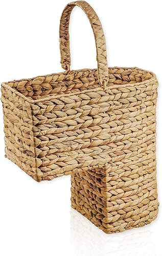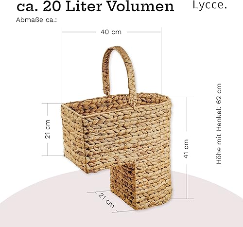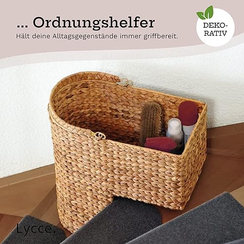 Lycce Panier d'escalier - Panier de rangement avec poignée en jacinthe d'eau naturelle - 20 l - Panier pour escalier (40 x 21 x 41 cm)