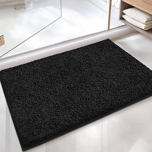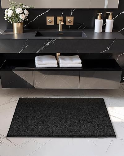 Color G Tapis de Bain Antidérapant, Tapis Salle de Bain Moelleux en Microfibre, Tapis de Douche Absorbant Lavable en Machine, 50 x 80 cm, Noir Pur