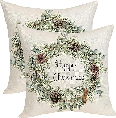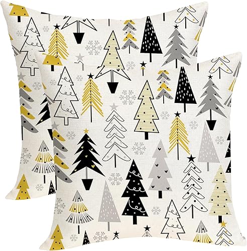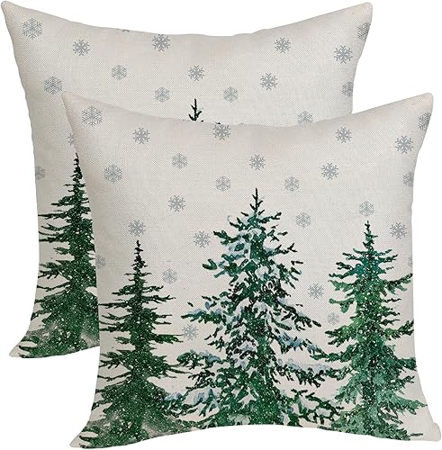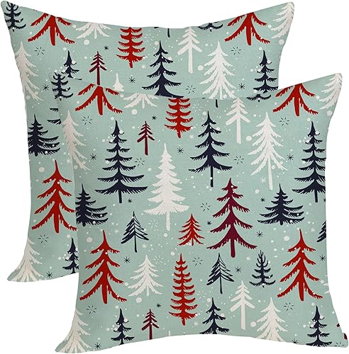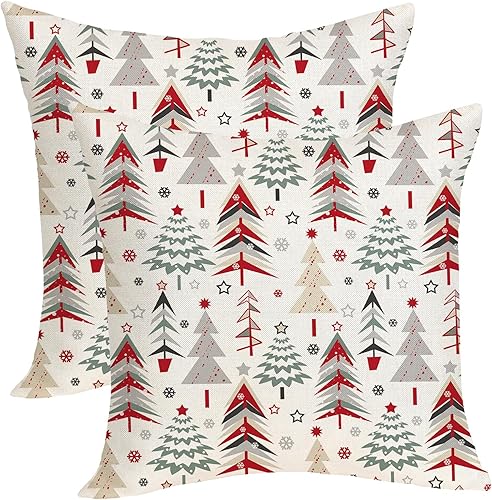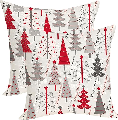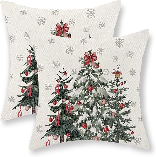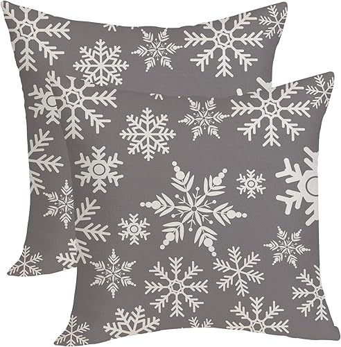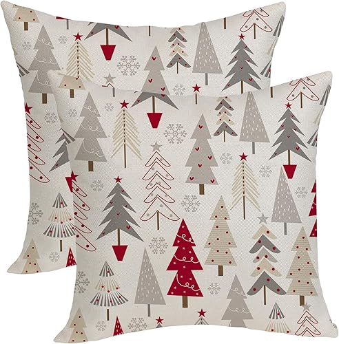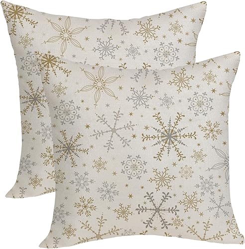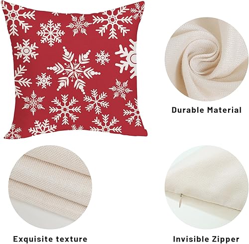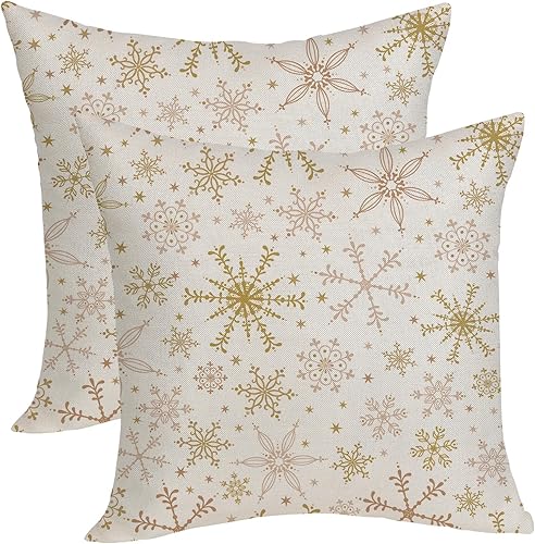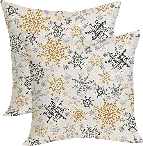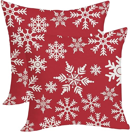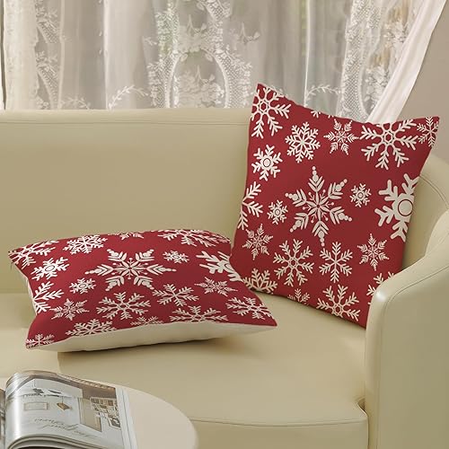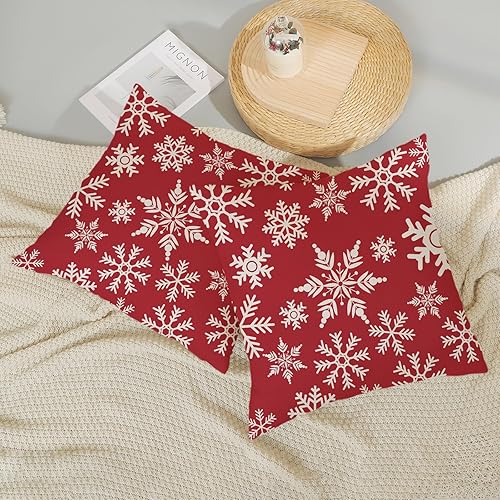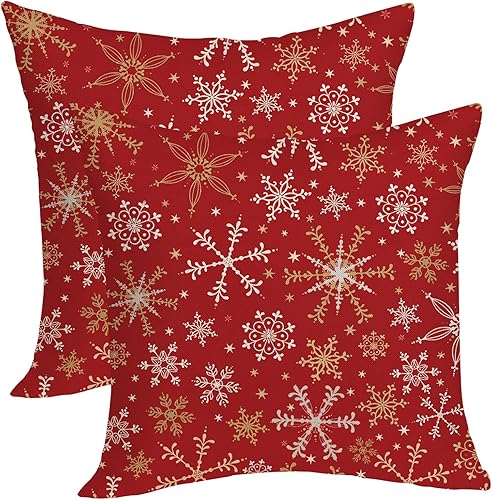 OFIRD Lot de 2 housses de coussin décoratives de Noël avec flocons de neige et décoration de Noël pour la maison et le canapé - 45,7 x 45,7 cm - Rouge et doré