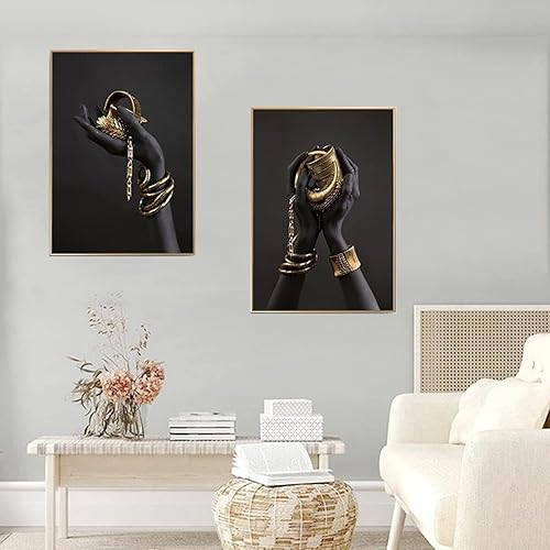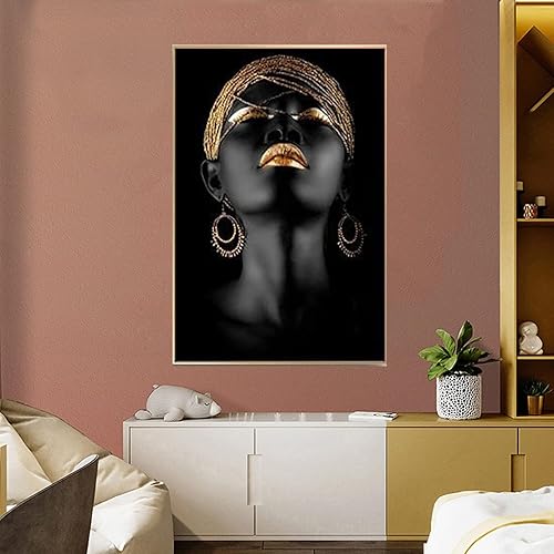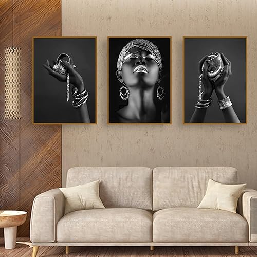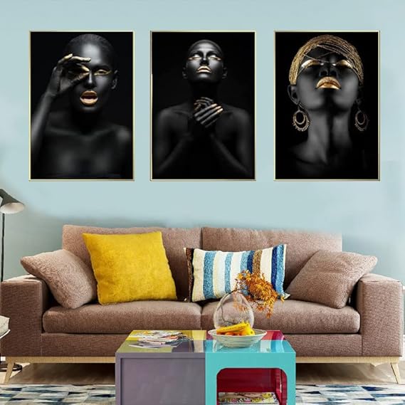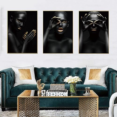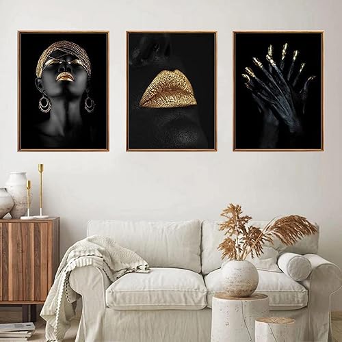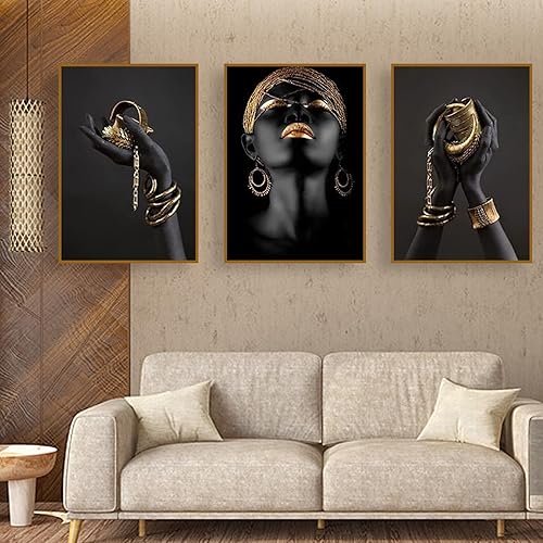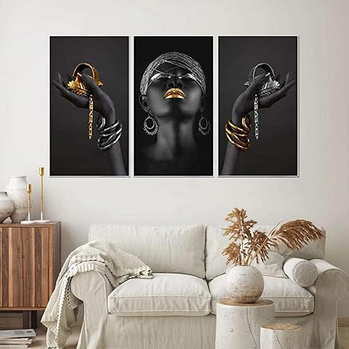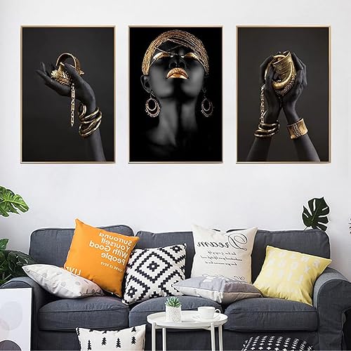 UGZDEA Lot de 3 images sur toile pour femme africaine - Collection dorée Pour femme noire Décoration de salon - Pas de cadre (A, 3x40x50cm)