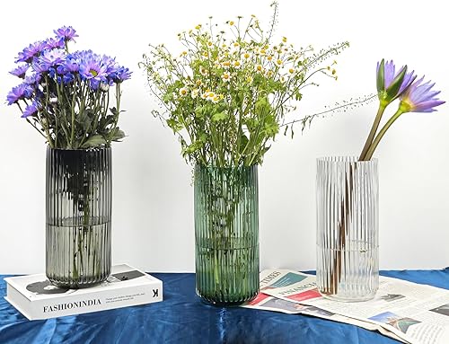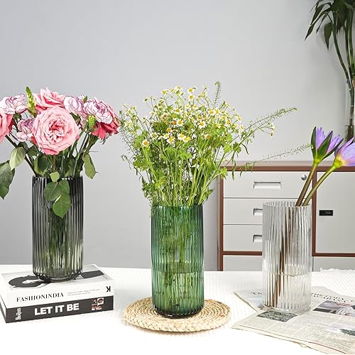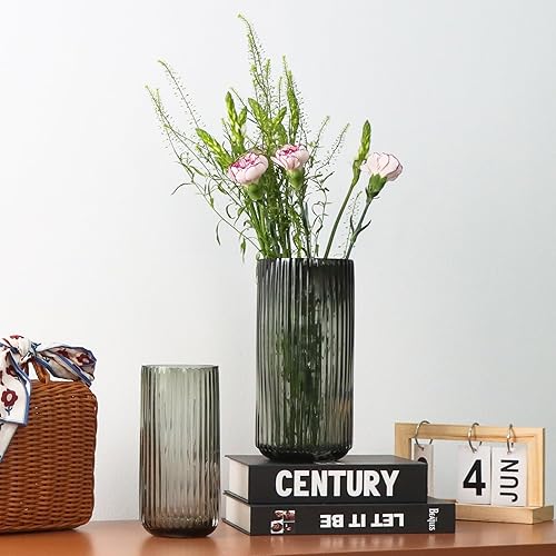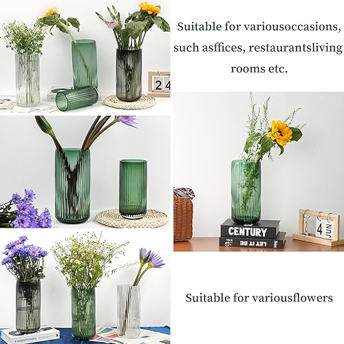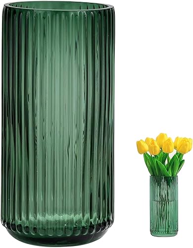 TEUYOE Vase en verre épais de qualité supérieure (vert, hauteur 20 cm)