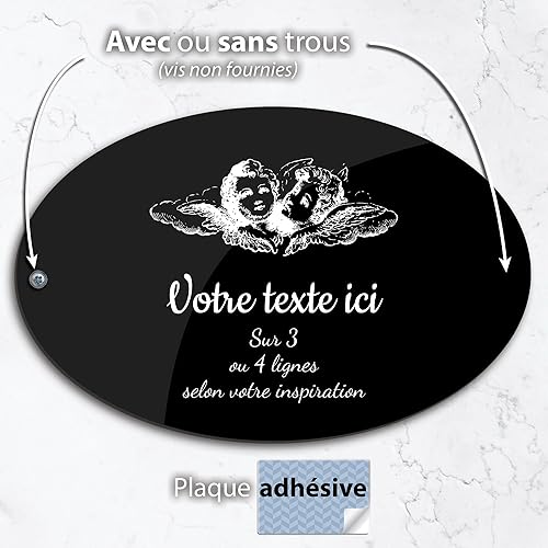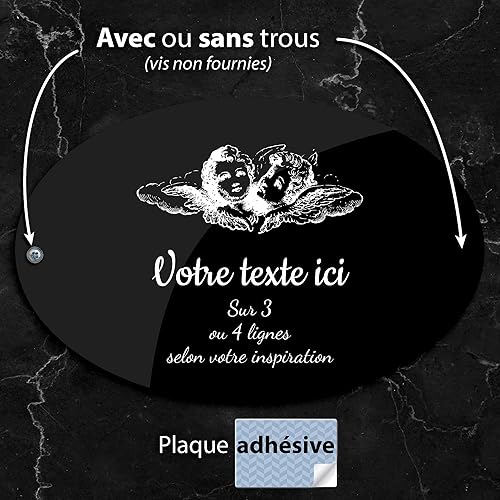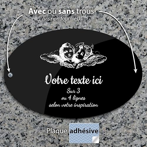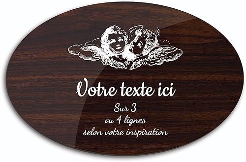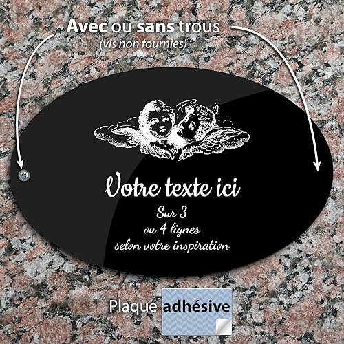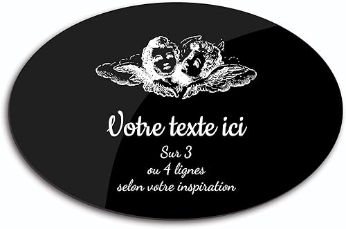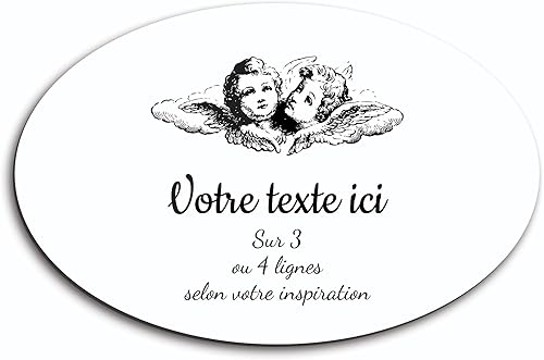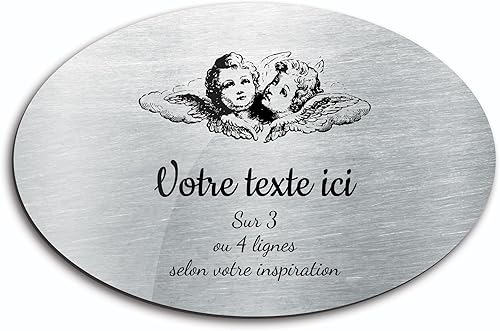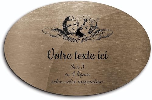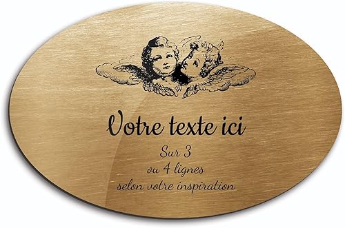 Plaque gravée funéraire motif Deux têtes d'anges autocollante modèle ovale (20x13 cm) personnalisée 1 à 3 lignes Or Brossé