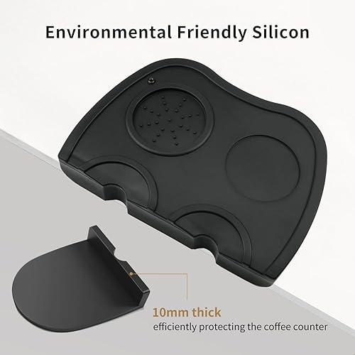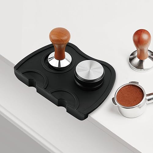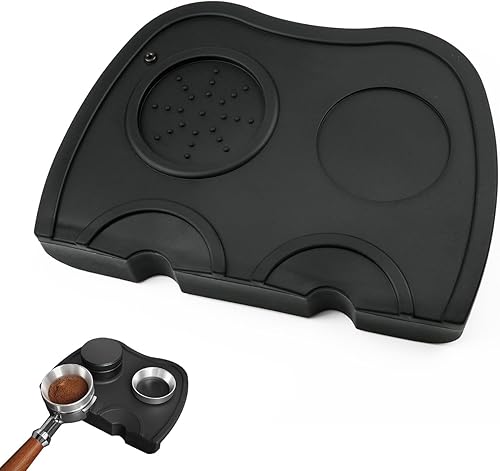 Allalley Grand tapis de tampon à café antidérapant en silicone pour protéger le plan de travail, tapis de tamponnage à expresso avec protection des bords, porte-filtre