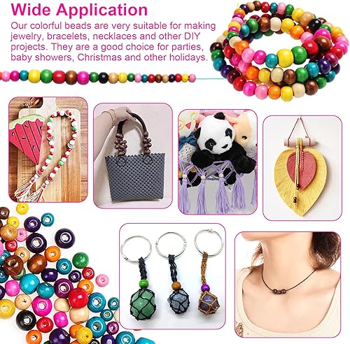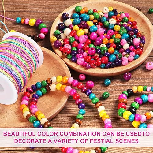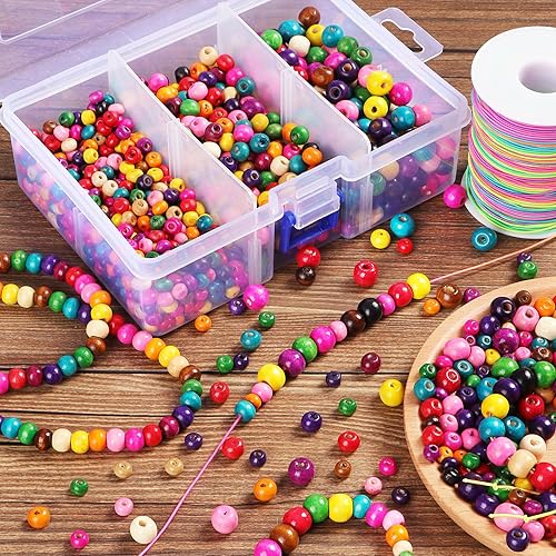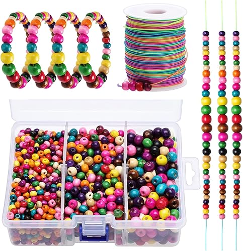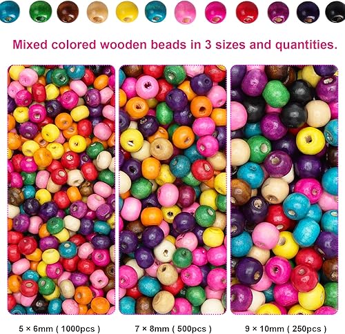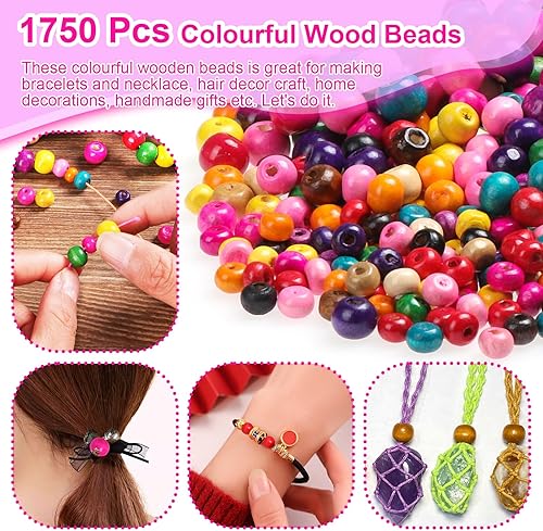 Kinsinder 1750Pièces Perles Bois Colorées Enfants, Perles en Bois avec Elastique Couleur Couture, Bijoux en Perles Bois pour Bricolage Bracelets Bijoux Artisanat