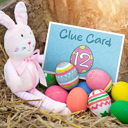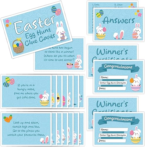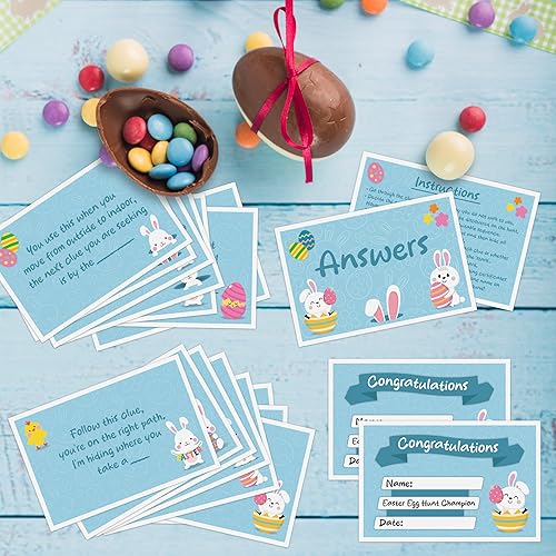Cartes d'indices de chasse aux œufs de Pâques pour enfants – Grande chasse au trésor de Pâques réutilisable pour l'intérieur, jeu de fête, activité domestique avec certificats gagnants