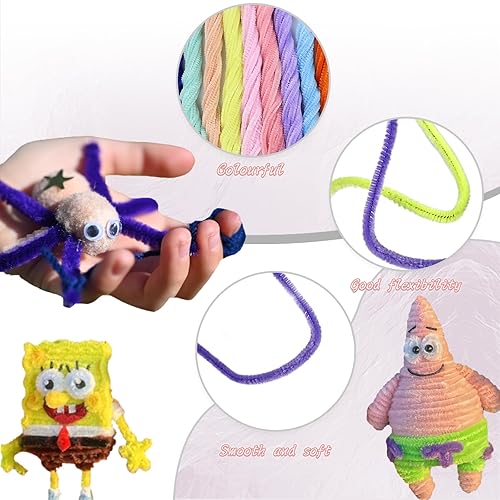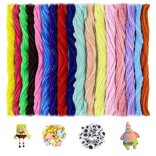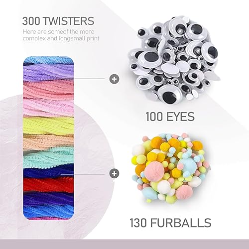 Kweiugfi Lot de 200 cure-pipes colorés - Nettoyeur de pipes longs en acier de 6 mm - 30 cm - 15 couleurs - 100 yeux mobiles autocollants - 130 boules en fourrure