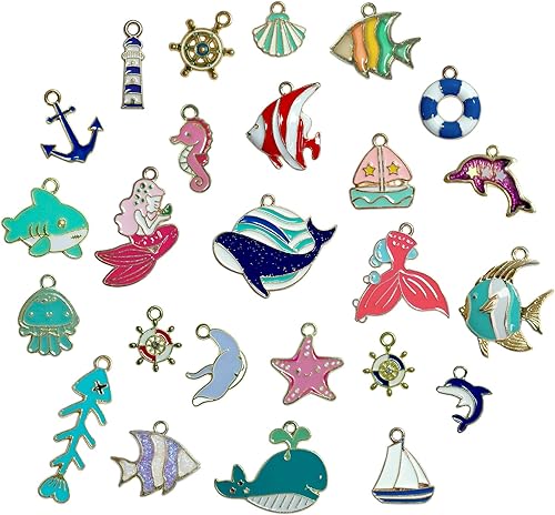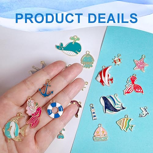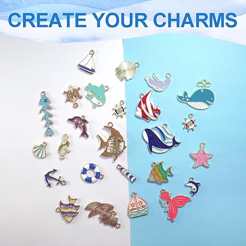 RYXZEN 25 Pièces Breloques d'animaux de Mer Charm Étoile de Mer Écaille Dauphin Pendentif DIY Perles Accessoires pour Boucle d'oreille Collier Bracelet Boucles D'oreilles Fournitures Artisanales