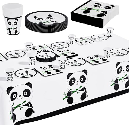 Panda Vaisselle de Fête 61pcs - Décoration d'Anniversaire Avec Gobelet en Carton, Assiette, Nappe - Pour Fille et Garçon