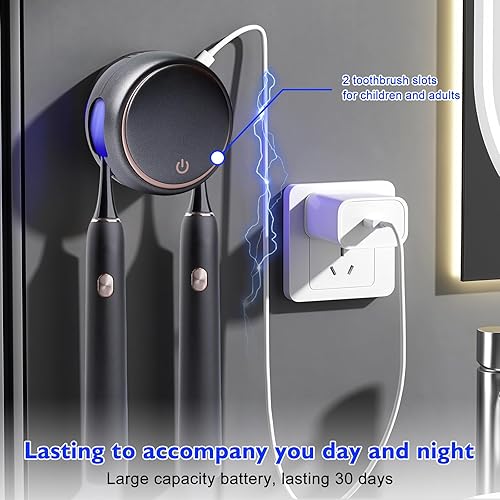 Stérilisateur de brosse à dents UV, porte-brosse à dents intelligent, montage mural, brosse à dents UV, désinfectant, peut contenir deux brosses, taux d'élimination des germes de 99 % pour la