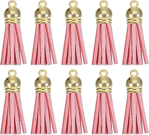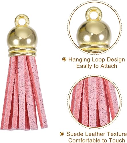 QUARKZMAN 20Pcs 1.5 Pouce Charme Porte-Clés à Pompons en Cuir avec Capuchon Doré pour la Fabrication de Bijoux de Bracelets Pendentifs, Décoration Artisanale DIY, Rose