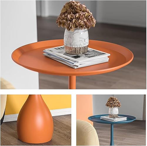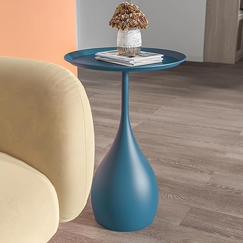 Yesbon Table d'Appoint Ronde en Métal pour Petits Espaces - Table de Chevet pour Salon, Balcon, Chambre - Bleu