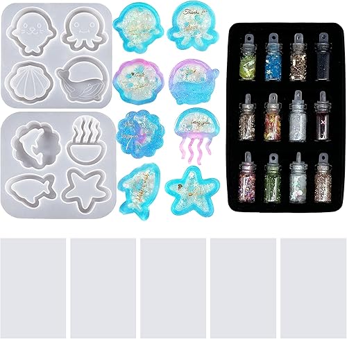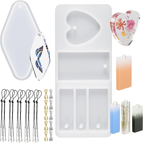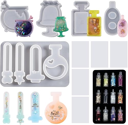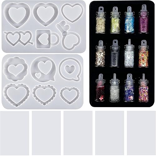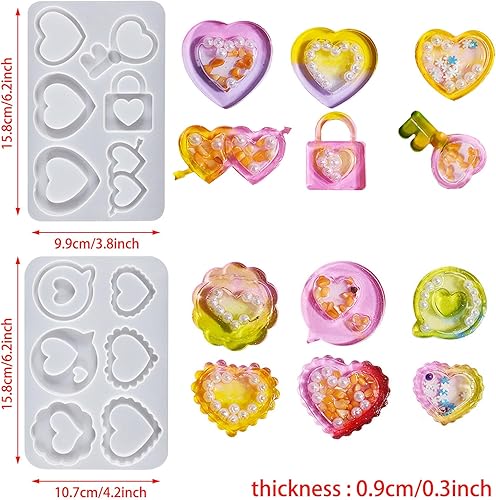 Attuslla 2 PCS Résine Shaker Moules, Moules en Silicone Shaker de Coeur Moules en Résine Quicksand avec PVC Feuille et Paillette pour Bijoux Collier DIY Créations Artisanats