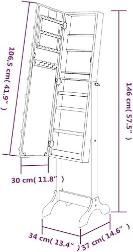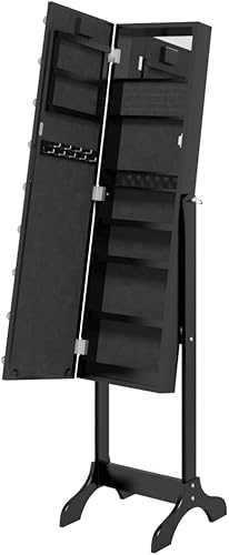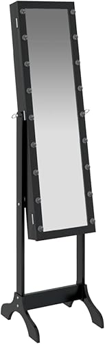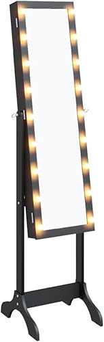vidaXL Miroir sur Pied avec LED, Miroir de Sol avec Rangement, Miroir de Maquillage, Décoration de Chambre à Coucher Couloir Vestiaire, Moderne, Noir