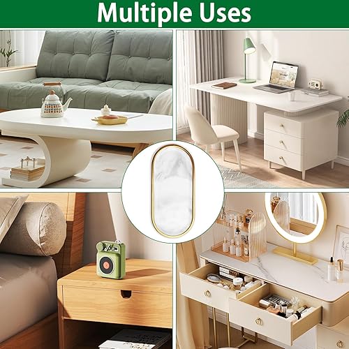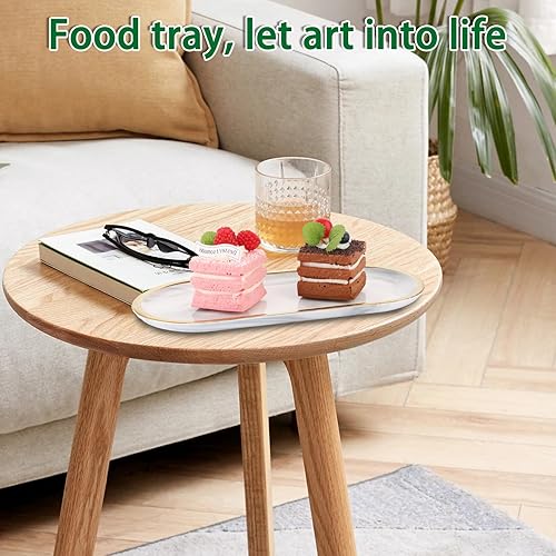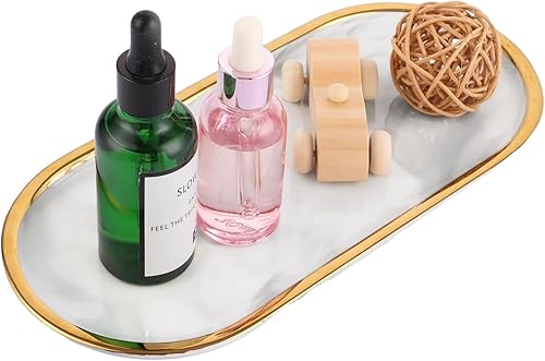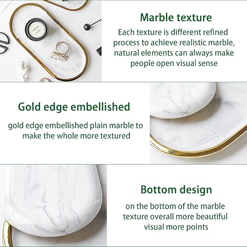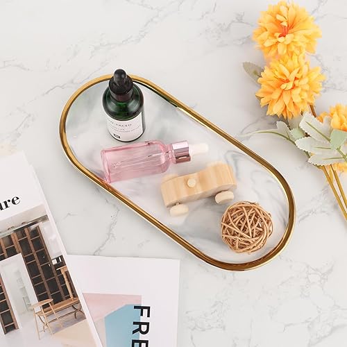 DAJAVE Plateau ovale en marbre - Plateau à bijoux avec bord doré - Plateau de salle de bain - Plateau décoratif - Plateau en marbre blanc - Plateau pour bougies, serviettes, bijoux
