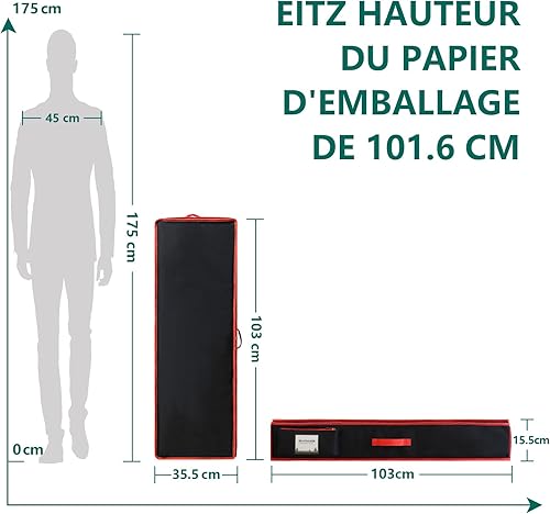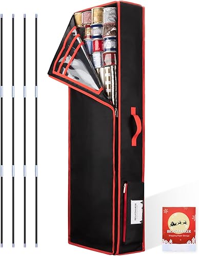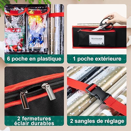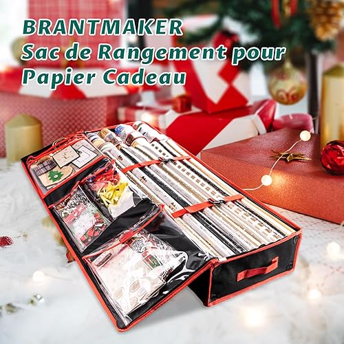 BRANTMAKER Sac de Rangement pour Papier Cadeau, Organisateur de Sac pour Rouleaux Papier Cadeau de Noël Avec Trousse à Outils(Sans Tiges De Fibres)