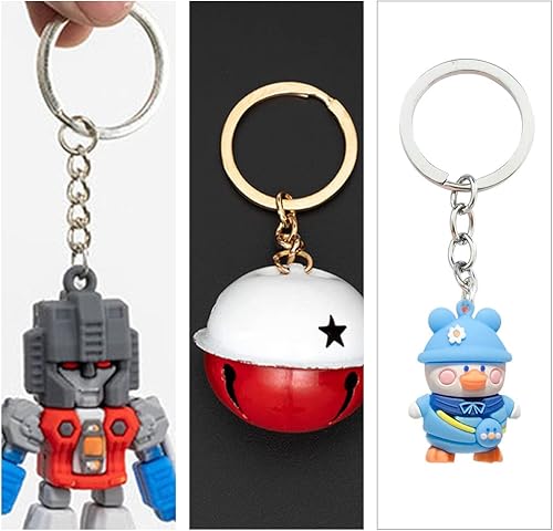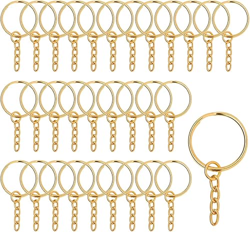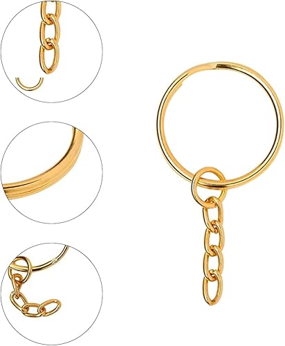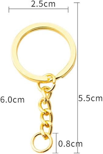 LEEQBCR 30 pièces 25mm porte-clés plat avec chaîne porte-clés avec anneau fendu, utilisé pour l'artisanat de clés bricolage, fabrication de bijoux, métal en acier inoxydable (doré)
