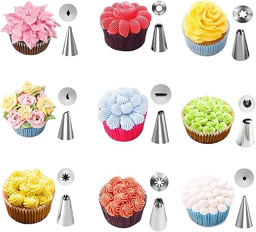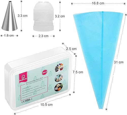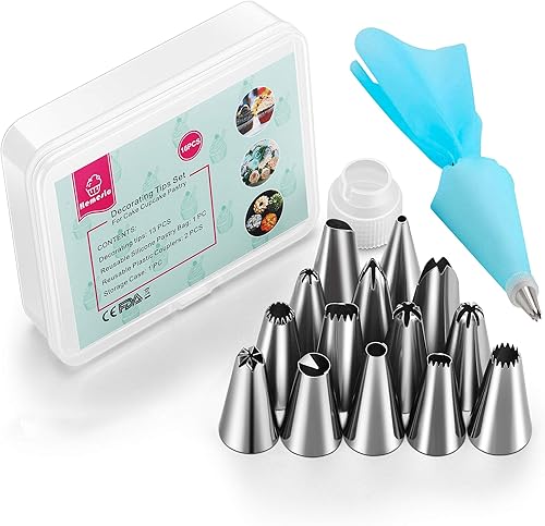 Douilles à Pâtisserie pour Décoration de Pâtisserie, Acier Inoxydable Douilles Patisserie DIY Kits Accessoires pour Décoration de Gâteaux, Muffins 14 Douilles, 1 Poches à Douille réutilisable - 16 PCS