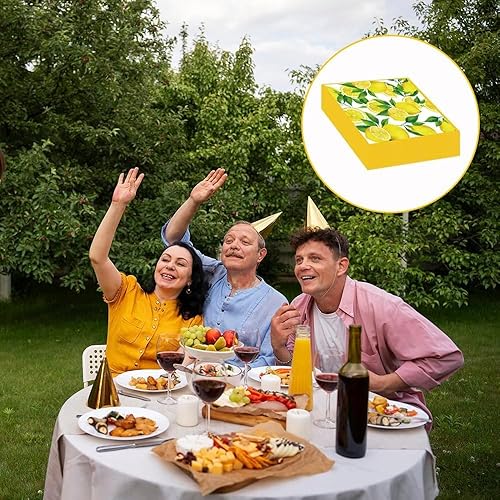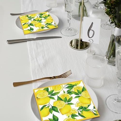 Glamifyr Lot de 40 serviettes de table au citron parfaites pour les anniversaires, les fêtes, les mariages, les communions et les célébrations, serviettes motif citron, serviettes d'été, 33 x 33 cm