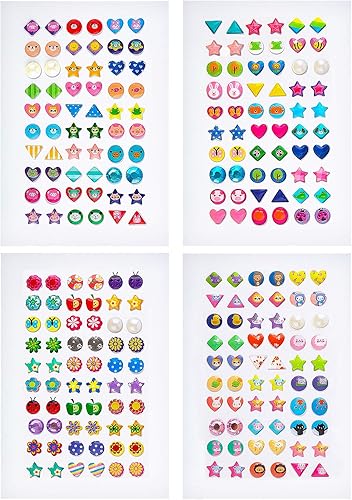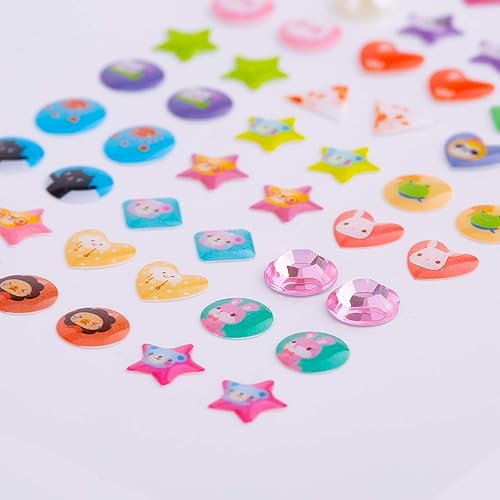 SAVITA 240 Pièces Coller sur Boucles d'oreilles 3D Gem Autocollants Glitter Cristal Autocollants Autocollant Boucles d'oreilles pour Filles Enfants Enfants Plusieurs Couleurs et Formes (4 Feuilles)