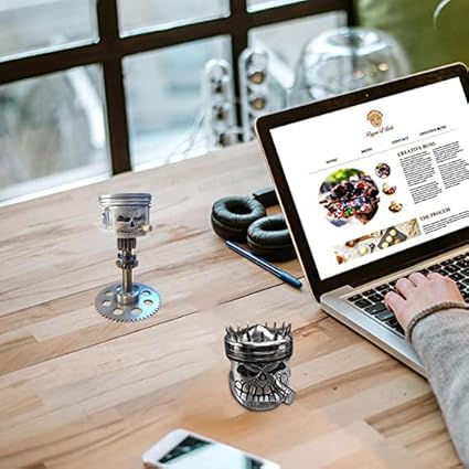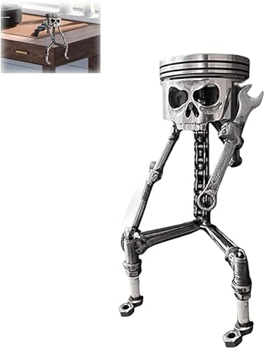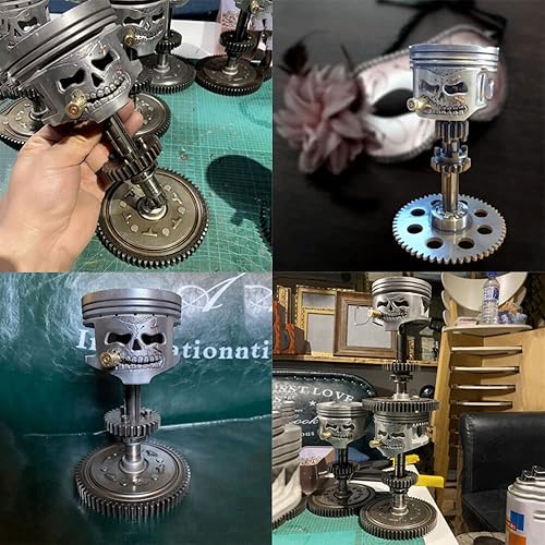 HADAVAKA Piston Skull Face Sculpture, Resin Crafts Realistic StatueHandmade Man Head Statue Office Home Table Desk Decor, Carving Piston Skull Face Sculpture Metal Art Figurine (B: 14 * 7 * 7cm)