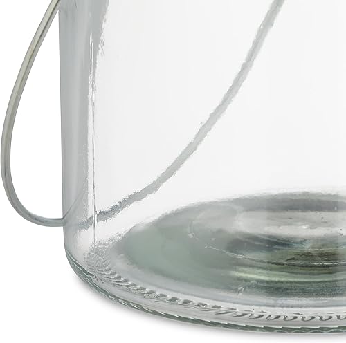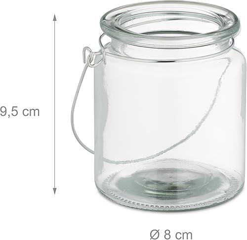 Relaxdays Photophore en Verre, Lot de 12, Porte-Bougie avec Anse, HxD : 9,5x8 cm, bougeoir Rond, Transparent/argenté