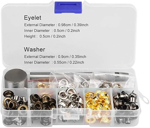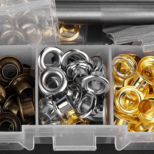 Walfront Kit Oeillet 5mm x 220pcs / 3mm x 420pcs, Oeillets en Métal pour Outil de Réglage avec Boîte de Rangement pour Chaussures, Artisanat du Cuir, Projets de Bricolage(5mm*220pcs)