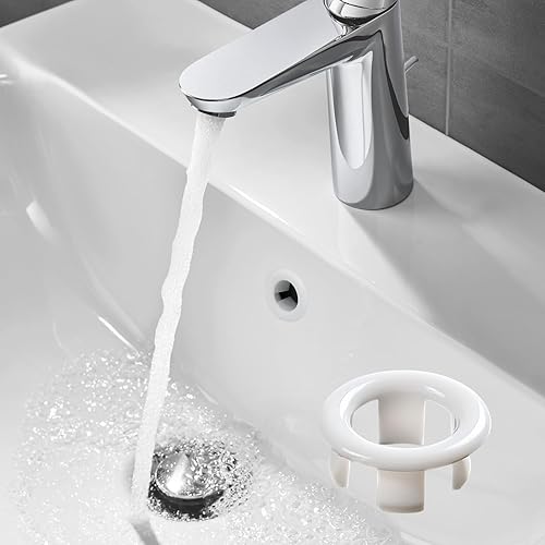 EUYKQNOI 8pcs Anneau de Débordement d’Évier - Anneau Bouchon De Trop-Plein, Garniture Évier de Trou Rond, Couvercle Anneau de Trop-Plein de Lavabo Salle de Bain(Blanc)