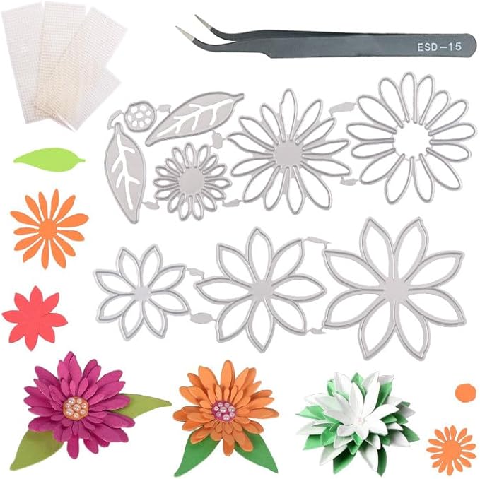 URROMA Matrices de Découpe de Fleurs Tridimensionnelles, Modèles de Gaufrage 2D en Acier au Carbone, 3 Styles, Pochoirs Découpés en Fleurs pour Décor D'Album Photo Scrapbook, 2 pièces