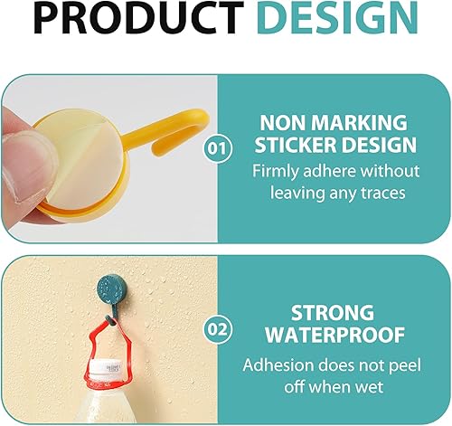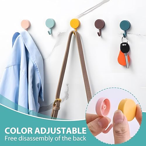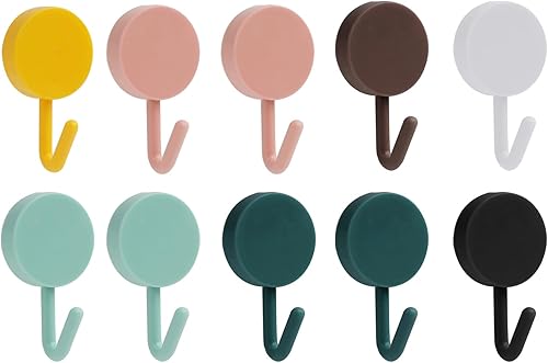 Crochet Adhésif Mural, 10 Pièces Petites Colorés Crochets Muraux Sans Percer ni Clous, Crochets pour Serviettes de Bain Pour Accroche Salle, Cuisine, Plafond, Accrocher, Mural, Porte, Peignoirs