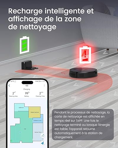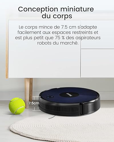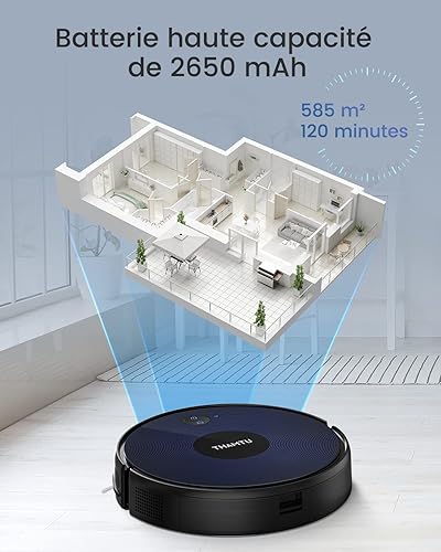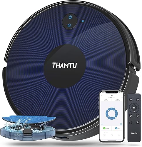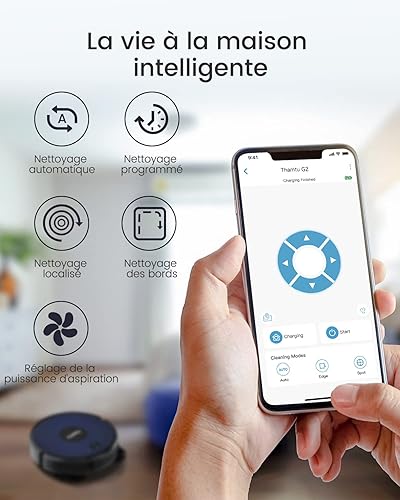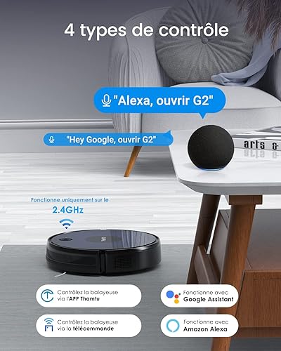 Thamtu G2 Aspirateur Robot, 130 Minutes de Fonctionnement, APP et Commande Vocale, Robot Aspirateur Mince, sans Enchevêtrement et Auto-Chargeant, Idéal pour Les Poils d'animaux, et Les Moquettes