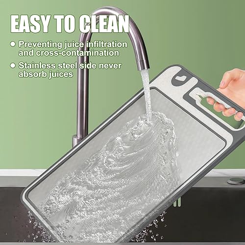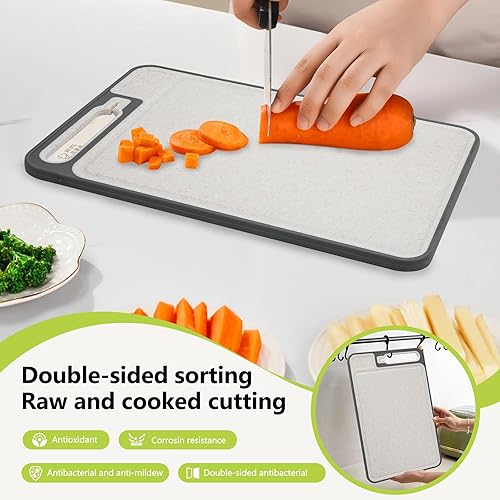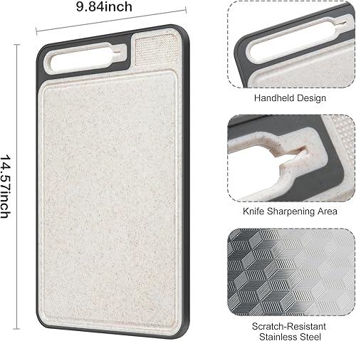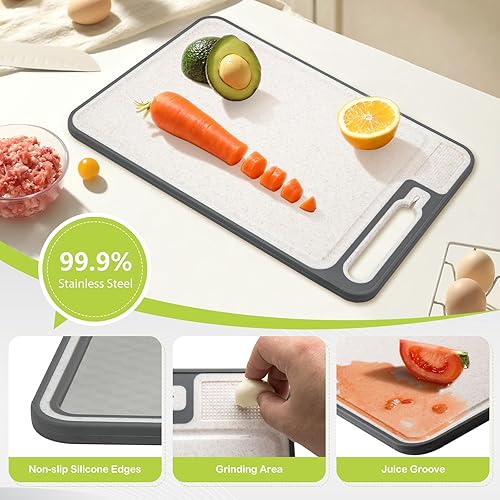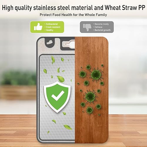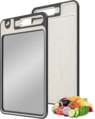 Tableau à couper double côté en acier inoxydable, gros aliment en acier inoxydable et straw de blé en plastique Tableau à couper pour la cuisine, poignée pratique, pieds antidérapants