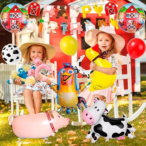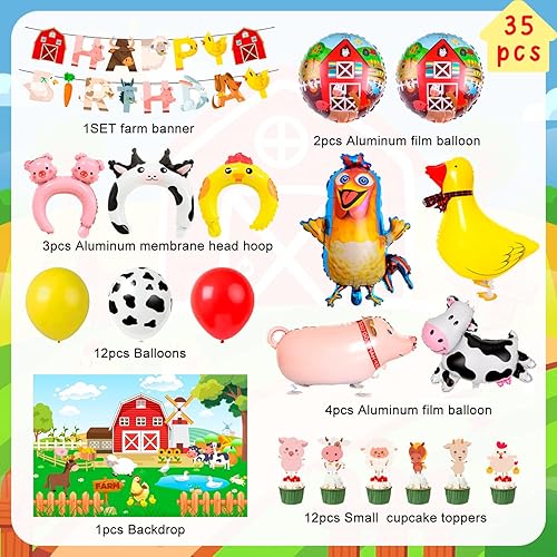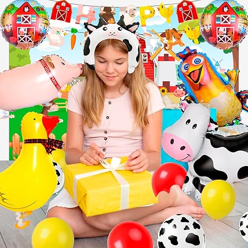 Decoration Anniversaire Ferme,Kit Anniversaire Animaux de la Ferme Inclure Ballon Anniversaire Fête Toile de Fond etc Fournitures de fête D'anniversaire de la Ferme pour Garçons et Filles