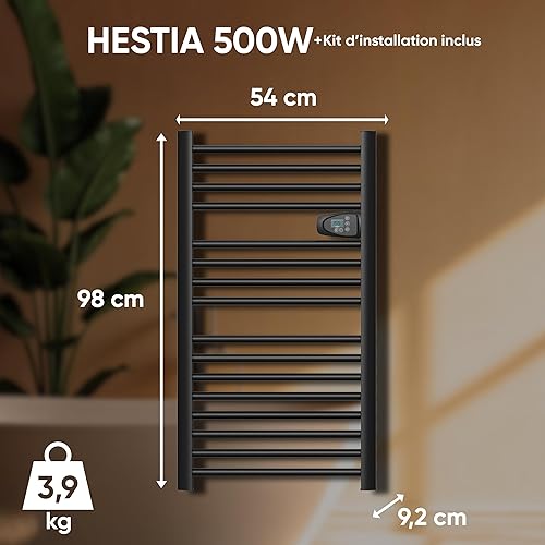 BESTHERM - Sèche-serviette électrique sans fluide 500W H.98xL54cm Bestherm HESTIA noir
