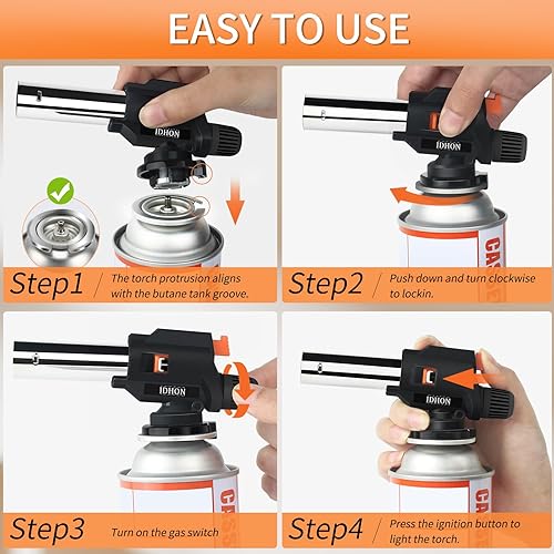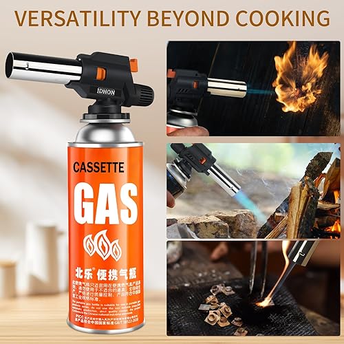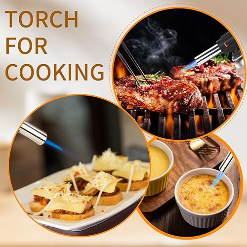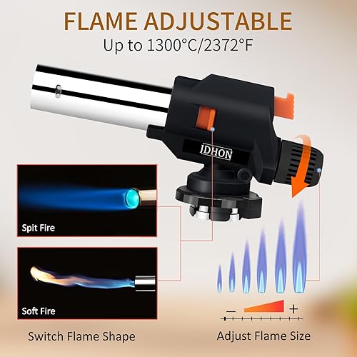 JDHON Chalumeau de Cuisine, Torches de Cuisine, Brûleur de Cuisine Réglable pour BBQ, Crème Brûlée, Pâtisseries, Desserts, Camping (Butane non Inclus)- Noir