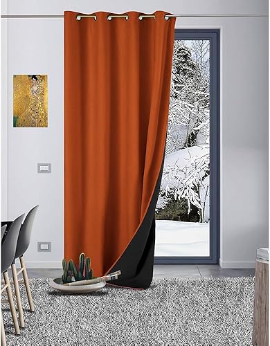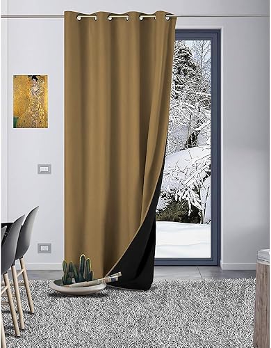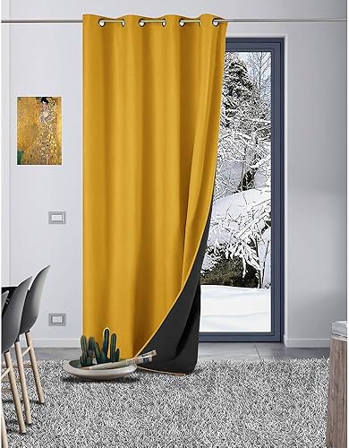 LNT France - 1 Rideau Occultant Thermique Isolant - Anti Froid - Anti Chaud - GALEO - 140 x 260 cm - Œillets (Ocre), A-GAL0000