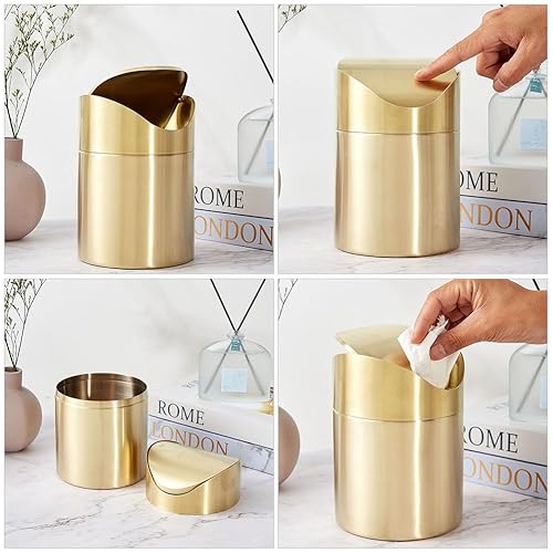 OSALADI Poubelle De Bureau Petite Mini Poubelle Mini Poubelle Maquillage Poubelle De Table Pour Salles De Bains Cuisines Coiffeuse Or