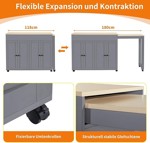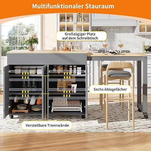 Zepneiy Table de Bar Extensible Moderne (118-180×50×94cm) avec Espace de Rangement, avec Six étagères, Table de bistrot pour Restaurants (Blanc)