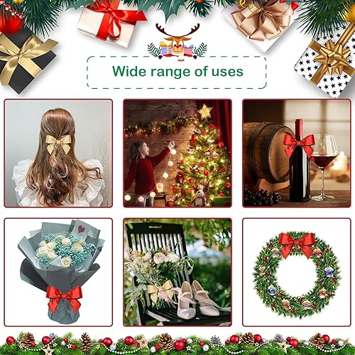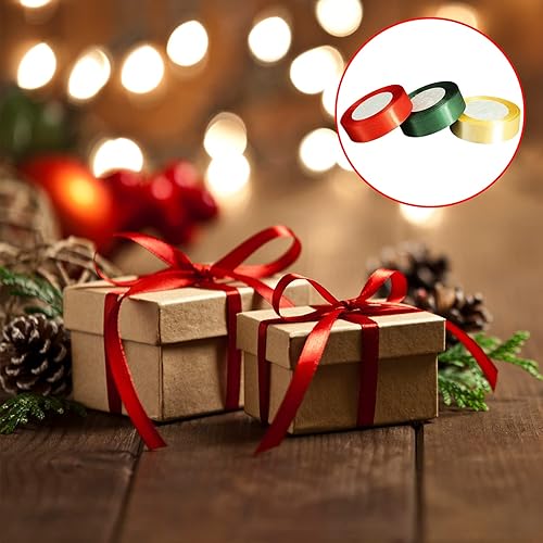 Annhao Ruban Satin de Noël pour Emballage, 25mm x 69M, 3 Rouleaux Rouge Vert Foncé Or pour l'Artisanat, Décorations, Mariage, Anniversaire, Fête